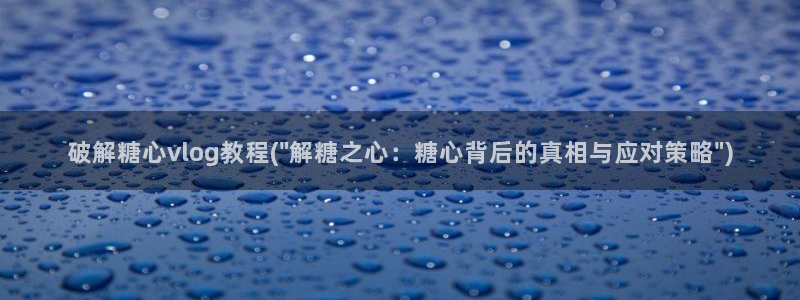 糖心正版:破解糖心vlog教程(\"解糖之心:糖心背后的真相与应对策略\")